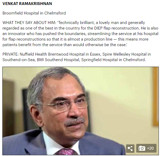Read MoreConsultants rank Mr. Ramakrishnan amongst the top reconstructive surgeons in the Daily Mail’s Good Doctors’ Guide